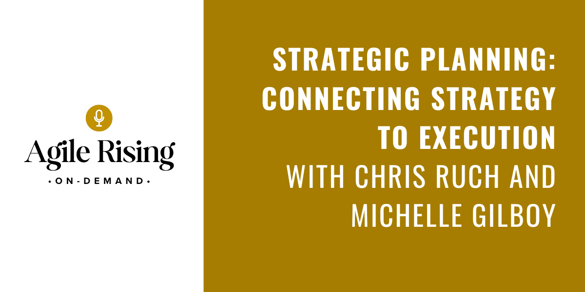 Unlock the full potential of your strategic planning process with Strategic Planning: Connecting Strategy to Execution. Agile Rising’s CEO, Chris Ruch, and Upwards Consulting CEO, Michelle Gilboy explore the impact of effective strategic planning in aligning your organizational goals with actionable execution and results.
